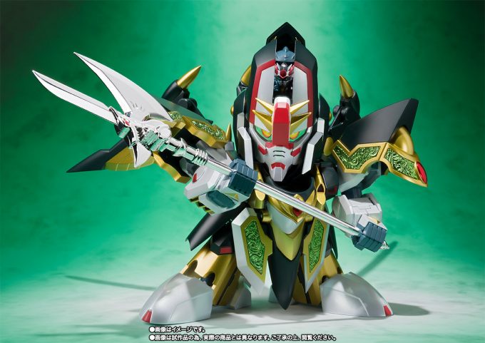 本商品为全高约140mm的完成品公仔,能够完全变形为「龙型」和「骑士型」。还附尺寸约20mm,摆出高举雷龙剑姿势的魔龙剑士零式高达的已涂装公仔。