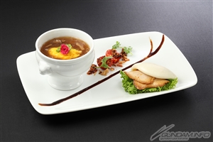 ・鱼翅炒饭 / 盐炒花枝花椰菜 / 棒棒鸡 / 一口桃子包 / 春卷
