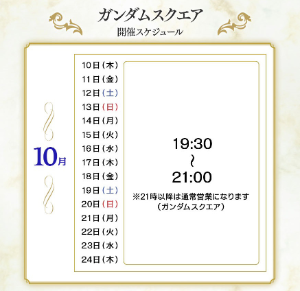 ※关于自由席空位的相关资讯,将随时在GUNDAM Cafe的推特(@gundamcafe2010)进行公告。