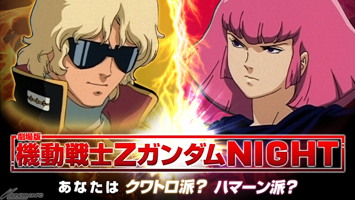 “剧场版 机动战士Z高达Night~你是克瓦特罗派?哈曼派?~”将会让顾客在订位时选择“克瓦特罗”或是“哈曼派”,将会在所有人都可以参加的投票系统进行统计,投票结果预定今后刊登于GUNDAM INFO。