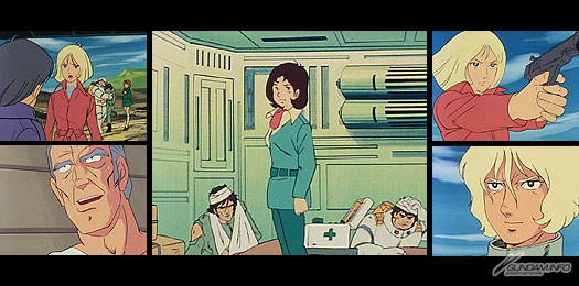 从芙劳.鲍为身受重伤的保罗舰长包扎时流露的吃惊表情,就能理解到伤势的严重程度。当舰长与布莱特开始对话,提到高达驾驶员阿姆罗的名字时,背对着布莱特、芙劳瞬间变了脸。这是因为她先前才遇到搭乘高达的阿姆罗。但是,她什么也没说。说不出口。类似这样,只着重于人物内心发生动摇时的演出,不但引发了观众的想象力也产生了独特的临场感。
