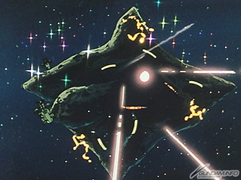 联邦军本回的作战是要排列镜面将要塞以太阳光烧毁。其中已经被破壊的Side1的残骸相当写实。镜中映射的宇宙战舰描写相当详细。