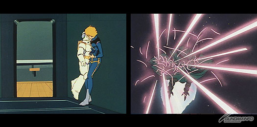 正因为是前所未有的超巨大兵器,演出很彻底的走无法一次认清全貌的方式。因为硝烟而无法看到兵器身影,在窗口里只看得到身体的一部分。阿姆罗发现的时候也是,只看得到主要推进器的喷射烟。就算钢加农撞进去,凯也不知道到底发生了什么事。正由于这些琐事的堆积,才能传达出毕格萨姆其压倒性的威胁。