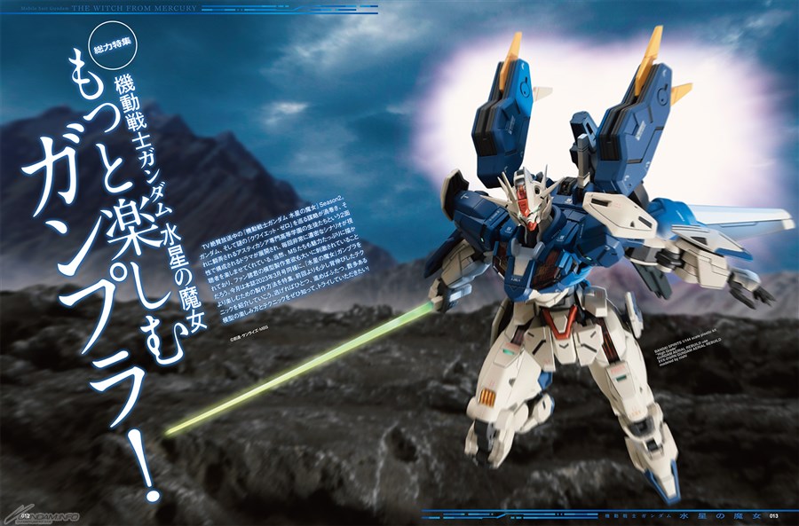 本期特辑是“用机动战士高达 水星的魔女’更加体会高达模型的乐趣!”。针对从‘水星的魔女’开始接触模型的初学者,展现细节提升作业跟旧化处理、场景制作的方式,甚至还有专业模型家的示范成品制作花絮等内容。