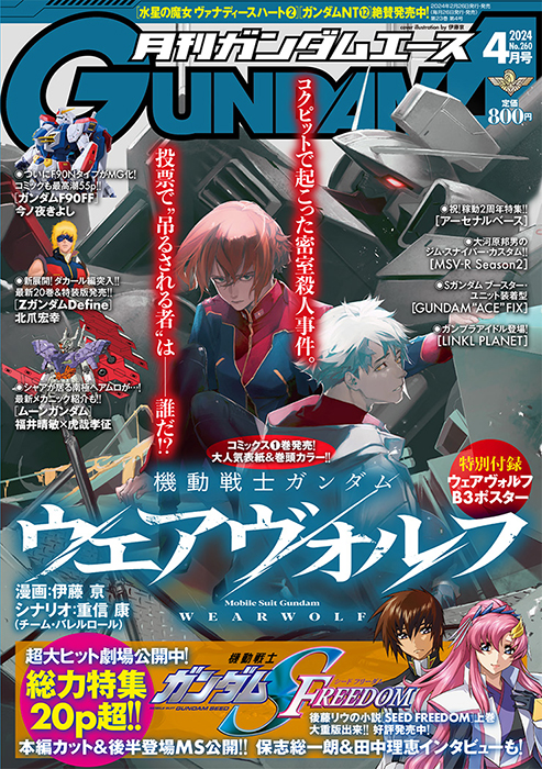 “机动战士高达 WEARWOLF”封面彩页&特别附录B3海报!“月刊GUNDAM A 2024年4月号”今天发售!