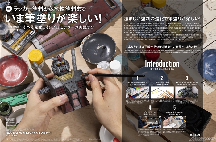 本特辑中,我们将尽可能介绍使用性能显著提升的水性Hobby Color以及传统经典的漆料的笔涂上色技巧!套件大小也从大尺寸模型到高达Artifact,网罗所有现在能够展现的笔涂技巧。敬请在本特辑中找到最适合自己制作风格的上色方式!