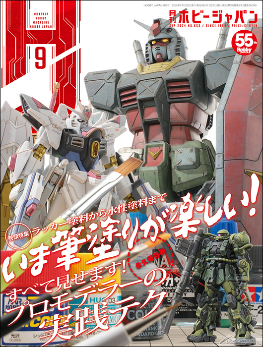 “月刊Hobby Japan 2024年9月号”特辑是“从漆料到水性涂料,现在笔涂上色超好玩!全部秀给你看!专业模型师的实战技巧”。