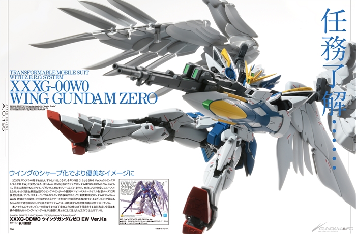 本期刊载了“MG飞翼高达零式EW Ver.Ka”的套件介绍制作范例。