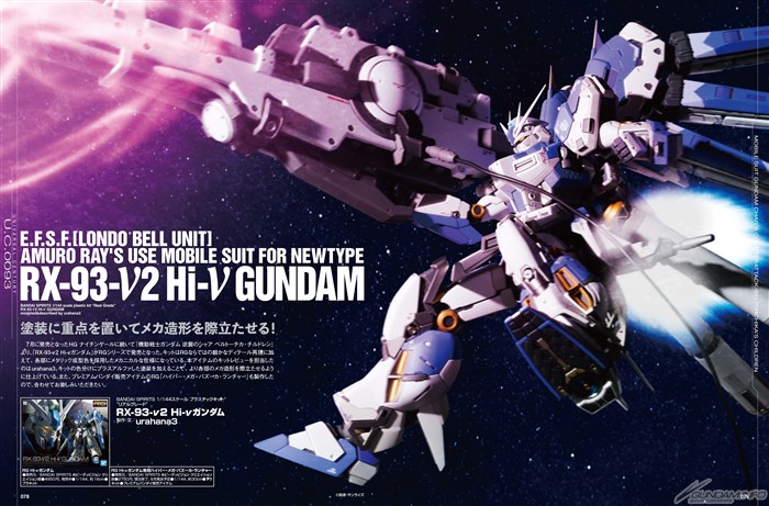 负责本商品的是职业模型师urahana3。也制作了PREMIUM BANDAI贩售商品“RG 1/144 Hi-ν高达专用超绝火箭发射器”,也请一同观赏!
