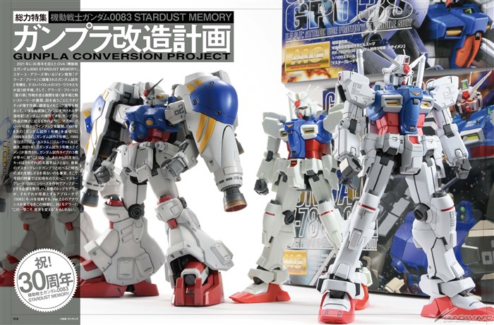 本月号的刊头特辑是迎接30周年的OVA‘机动战士高达0083 星尘回忆录’全力特辑!将以MASTER GRADE为中心的1/100比例,来介绍其中登场MS的魅力。