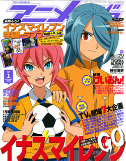 本月号封面&封面特辑为剧场版公开前夕的‘闪电十一人GO’! 登上封面的是风丸一郎太与雾野兰丸的新旧人气角色组合♥ 插图海报为吹雪&雪村,这也是新旧角色的联手特别插图。总共16页的大特辑里,首先是宫尾佳和导演的采访。询问关于剧场版相关问题重点。演员的座谈会上,饰演天马的寺崎裕香小姐&饰演剑城的大原崇先生&饰演神童的斋贺みつき小姐将比较电视系列与剧场版并谈论作品的魅力。还有读者选出的“闪电灵魂伴侣2011”的结果发表♪ 豪华附录也是‘闪电十一人’! 大受好评的特制卡牌第2弹★队伍篇。本次当然也附全部54张卡片的画像,收录主要30个队伍。除了网罗第1弹未收录的插图之外,人气ED“またね…のキセツ(再会的季节)”也将初次卡片化,粉丝必收的收藏品喔♥ 使用‘闪十一’‘闪十一GO’两作品插图的原创图书卡3种也将者全员赠送☆ 还有热门公开中的电影‘K-ON!轻音部’也刊出11页的大特辑♥ 山田尚子导演的长篇采访,将讲述故事及重点之外,演员采访里饰演律的佐藤聪美小姐与饰演的寿美菜子小姐登场。当然还附有华丽的写真☆ 另外也将直击采访OP&主题曲的作曲者・Tom-H@ck先生♪ 堀口悠纪子小姐原画所描绘的主题“伦敦TEA TIME”。也敬请期待喔♪ 特别海报为‘闪十一GO’‘K-ON!轻音部’、‘歌之☆王子殿下♪ 真LOVE1000%’的“雪中的S班”、‘青之驱魔师’的“磷×雪男★正装版”喔 ♥ 另外接续前月号刊登2012年1月开始的新动画特辑☆ ‘新网球王子’‘在盛夏等待’‘黑岩★射手’‘夏目友人帐 肆’等令人期待的新作♥ 惯例每年举办创作者亲笔贺年卡礼品活动也将进行“Animage”1月号现在马上快到书店买喔GO!