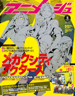 Animage 5月号,这个春季的话题作‘目隐都市的演绎者”在封面&刊头特集早早登场!原作者的じん和人物设计的しづ、八濑 佑树监督等人畅谈本作的卖点☆封面插画由しづ绘制!同时还内附这张插画的海报喔。另外还刊登了快速了解‘阳炎计划’的解说,大家可以不用担心“什么是‘阳 炎计划’?”这个问题!