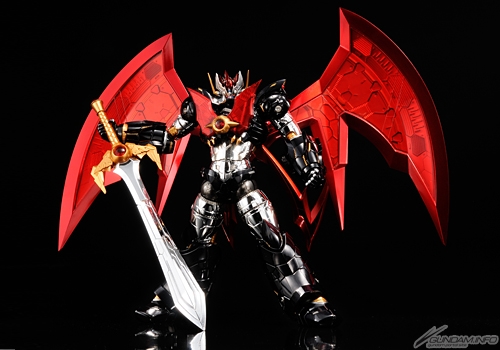 以压到性的份量及可动动作蔚为话题的「RIOBOT 魔神凯萨」,在全身金属涂装及电镀处理後新装登场。让观赏者不禁发出赞叹的压倒性动作机构丶全幅320mm的巨大凯萨飞翼,以及全长215mm的最终凯萨剑等等,维持着原本的魄力,以像是发动魔神力量的耀眼金属本体,还有各种涂装表现加以重现。