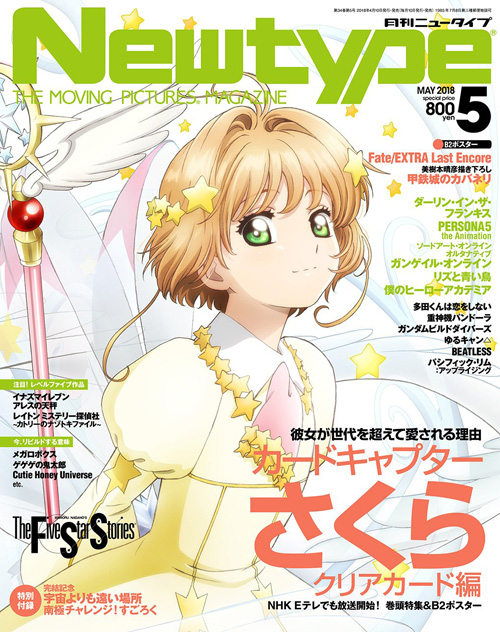 4月10日(二)发售的「Newtype 2018年5月号」,『魔卡少女樱 透明牌篇』于封面和刊头特辑登场。