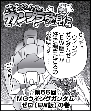 以在GUNDAM.INFO好评连载中的报导漫画「SD GUNDAM.INFO」而广为人知的森本がーにゃ先生,每次都会在本专栏介绍各种高达模型。第56回中介绍的是「MG 飞翼高达零式(EW版)」。