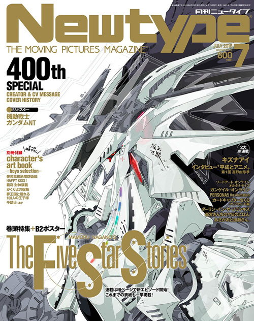 6月9日(六)发售的「Newtype 2018年7月号」,「The Five Star Stories」于封面与刊头特辑登场。