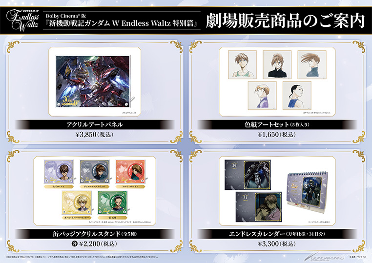 为纪念《新机动战记W敢达》播出30周年,期间在参与店铺购买《'新机动战记W敢达'Blu-ray Box 1」或「Box 2」即可获赠「包装发售公告重印B2海报(共2种)」。