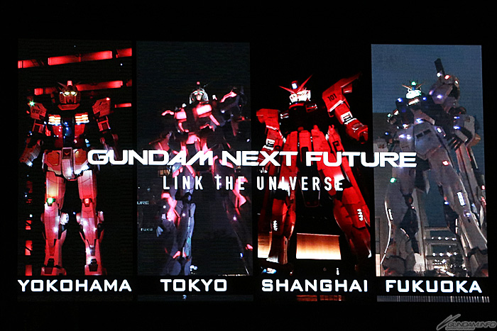由横滨的“可动高达”、台场的“实物大独角兽高达立像”、上海的“实物大自由高达立像”以及福冈的“实物大ν高达立像”共4座立像,首次尝试同时连结进行高达作品的BGM和雷射演出,实施具有规模感的新演出。