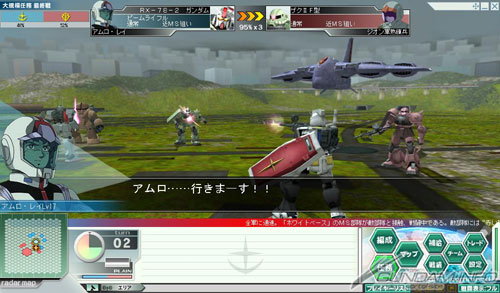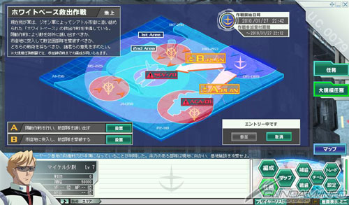 世界内的所有玩家都可以参加的大规模任务“第一关”,联邦侧将进行‘白色木马救出作战’,吉翁侧会进行‘木马包围作战’,在一共举行三战的预选之中拿下好成绩的话,就能以增援的身份参加可以与阿姆罗与夏亚、卡尔马等原作角色并肩作战的“大规模任务最终战”。