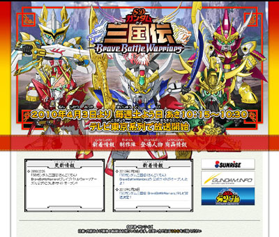 「SD高达三国传 BraveBattleWarriors」在剧场版之后,这次发表将改编为电视版动画,并自2010年4月3日(六)上午10:15~10:30,在东京电视台系列开始播出!