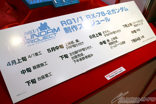 实物大立像「RG 1/1 RX-78-2 高达」的制作时间表公布了。