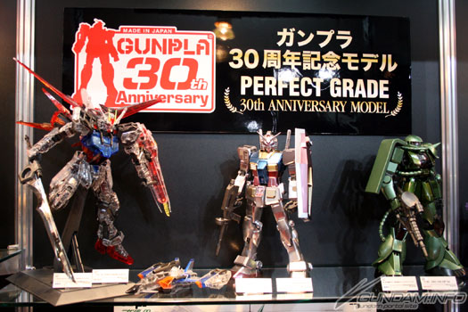 在PG专区上,有展示高达模型发行30周年纪念模型3款(发售中),还有由专业模型师制作的「PG 00强化模块」(发售中)范例作品展示。
