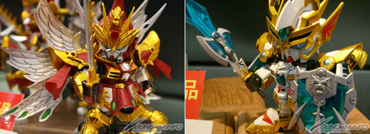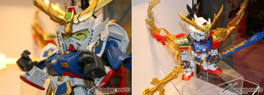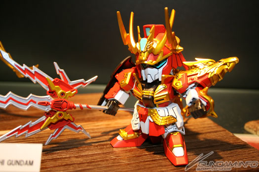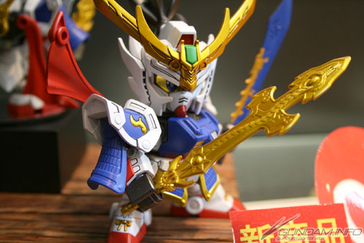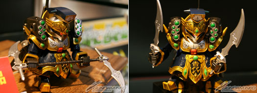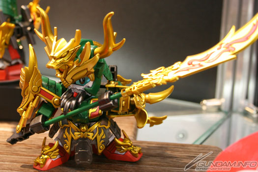 比一般系列的尺寸大两倍的「真 豪华 龙装 刘备高达」。大型的尺寸提升了可动度,而素材的使用区隔是更让特殊表现遍及全身。附专用台座,武器和铠甲都可以一起摆设。