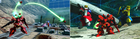 「光束步枪」、「超绝火箭炮」等丰富的射撃武器,一边牵制对手一边与对方保持有利距离,根据状况还能进行格斗战,是能对应各种距离的万能型MS。