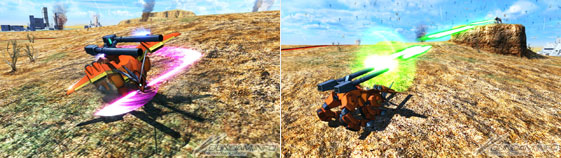 变形为WR型态可进行高速移动,自在地操纵与敌人之间的间距,构筑有利的战斗。