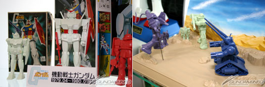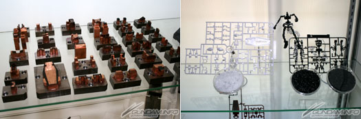 试作品、铸模、高达模型的材料「pellet」等的展示。