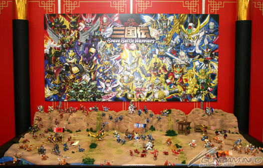 摆放着SD高达三国传的巨大实境模型,这里是海外发展介绍区。