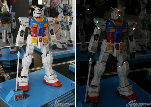 内藏着灯光照明机关、东静冈的高达立像「RG 1/1 高达」的完成模型也有展示。