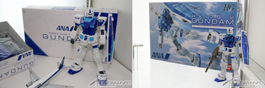 目前在机内贩卖的ANA独家配色款「1/8 MEGA SIZE MODEL 高达」和「HG1/144高达G 30th」也有展示。