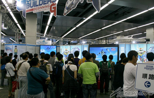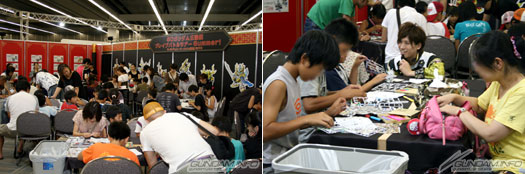 贩卖区连日来人潮汹涌,大家不断地在选购高达模型或外围商品。