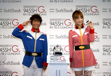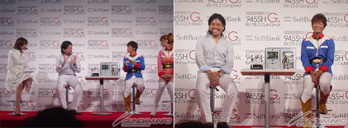 纪念发售典礼在今天于秋叶原举办,现场有和阿姆罗・雷这个角色非常熟稔的声优古谷 彻和艺人小仓优子小姐登场。边用自己的双手感觉手机和原创高达模型,一边热烈地诉说其魅力。