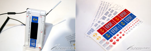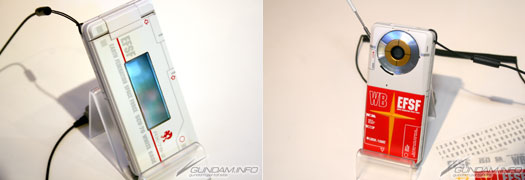 手机本体以“945SH”为基础,新追加以高达为形象所做的设计,光束剑形状的天线和附有联邦军标志的盾牌型电池盖等。