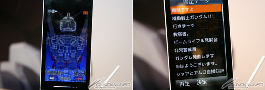除了电池的残量和电波状况的表示有所不同以外,也收录了许多阿姆罗的名台词等音效。