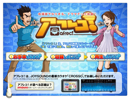 JOYSOUND的最新卡拉OK「CROSSO」所提供的配音体验服务『afrec!』的官方网页,在BANDAI NAMCO GAMES的官方网站中开设了。