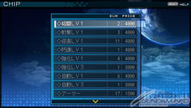 ←所持晶片一览可由“司令部”的选单“晶片清单”确认。 不要的晶片可以卖掉,转换为ACE POINT。 |