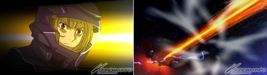 ▲发生事件“机动战士高达SEED”的大天使号突入大气圏,而阿斯兰率领的札夫特军也追着大天使号登场。