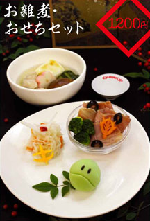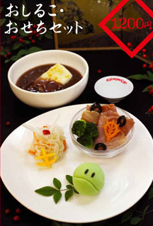 特别菜单为充满过年气氛的“杂煮、年菜套餐”和“红豆汤、年菜套餐”2种。此外前500名点选特别菜单的顾客,将可获得附GUNDAM Cafe标志的杯子!