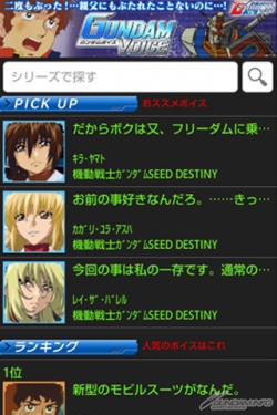 由NAMCO BANDAI GAMES营运的行动网站“高达GATE”人气语音专区“GUNDAM VOICE”将支援Android智慧型手机,于“au Smart Pass”好评配信中。