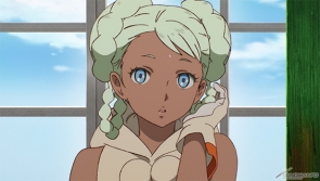 在圣波特上,来自月球的德瑞特将军和地球这边的古辛一行人进行了会谈。但会谈一结束,假面男和克宁便以圣波特为盾强行发动MS战。贝利对这种无视圣域的战斗感到愤怒…。